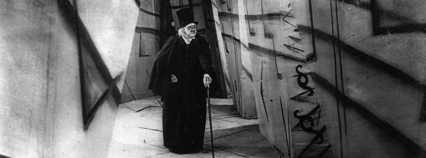 يُعدّ فيلم «عيادة الطبيب كاليغاري» (1920) للمخرج «روبار واين» أول الأفلام التّعبيرية، ويروي قصّة «كاليغاري»، مديرِ مصحةٍ عقلية بالقرب من مدينة هولستنفال، خوّل له ابتكاره لطريقة خاصة في التّنويم المغناطيسي أن يسيطر نفسيًا على الشّاب المنوَّم «سيزار» وأن يتحكّم في ردود أفعاله، فسخّره لارتكاب سلسلة من الجرائم بالوكالة عنه. ومن بين ضحاياه -فضلًا عن كاتب البلدة الّذي رفض السّماح له بتقديم عرضه على الملأ- خطيبة «فرانسيس جان» التي تعرّضت لمحاولة خطف. وينجح «فرانسيس» في كشف حقيقة مدير المستشفى، فيُحبس في إحدى الحجرات بعد أن تظهر للعموم أمارات الجنون التي كان يخفيها. ولكن الفيلم الذي يسرد «فرانسيس» حكايته عبر تقنية الارتداد أساسًا، ينتهي إلى عملية جدْل (twist) تخدع المتقبل وتتلاعب به وتقلب مسار الأحداث كلّيًا، فنكتشف أنّنا كنّا نتقبّل الحكاية من منطلق إدراك «فرانسيس» الذي يعاني من مس وأن «كاليغاري» سليم، فيعود الطّبيب إلى سالف عمله ويودع «فرانسيس» في حجرة من حجرات المصحّة ويعمل «كاليغاري» على مساعدته لتجاوز محنته. بيّن إذن أن الفيلم يطرح السّؤال حول الحدود الفاصلة بين العقل والجنون، وهي التّيمة الأثيرة للمدرسة التّعبيرية.