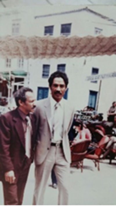 صورة لناصر في اليونان عام 1982. ويظهر إلى جانبه أصغر أعمامه عيسى.