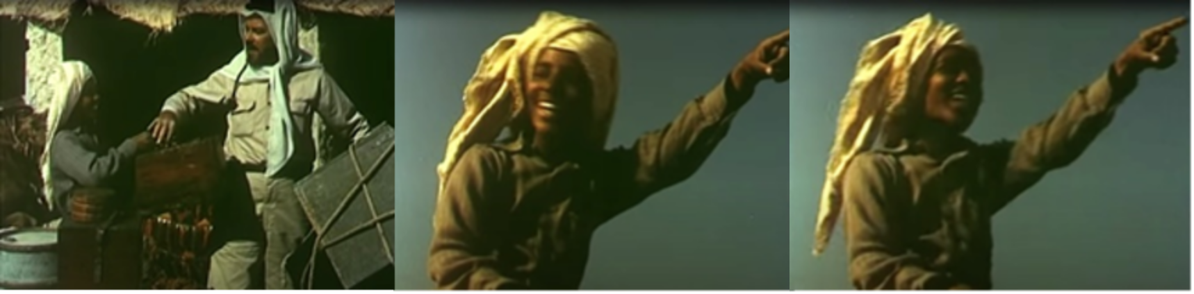 صور من الفيلم يظهر فيها ناصر بن مبارك في دور الفتى "حمد" (أرشيف أرامكو).