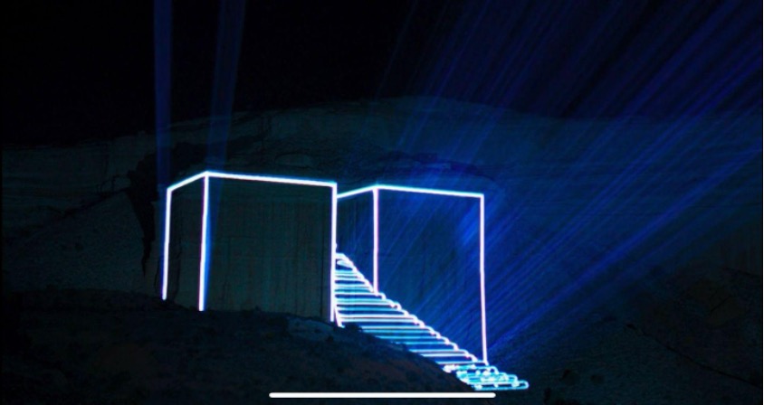 ونرى ذلك كله في إطارات بصرية بديعة: جبال ضخمة ونتوءات صخرية تُشكِّل عالم الأب الصلب والراسخ والجامد، ونرى عليها أضواء النيون التي تحوِّلها إلى رسومات وأشكال بديعة؛ سلالم وسماعات ضخمة، تخترقها الأصوات الصاخبة وتهزُّ حتى ذرَّاتها المتماسكة.