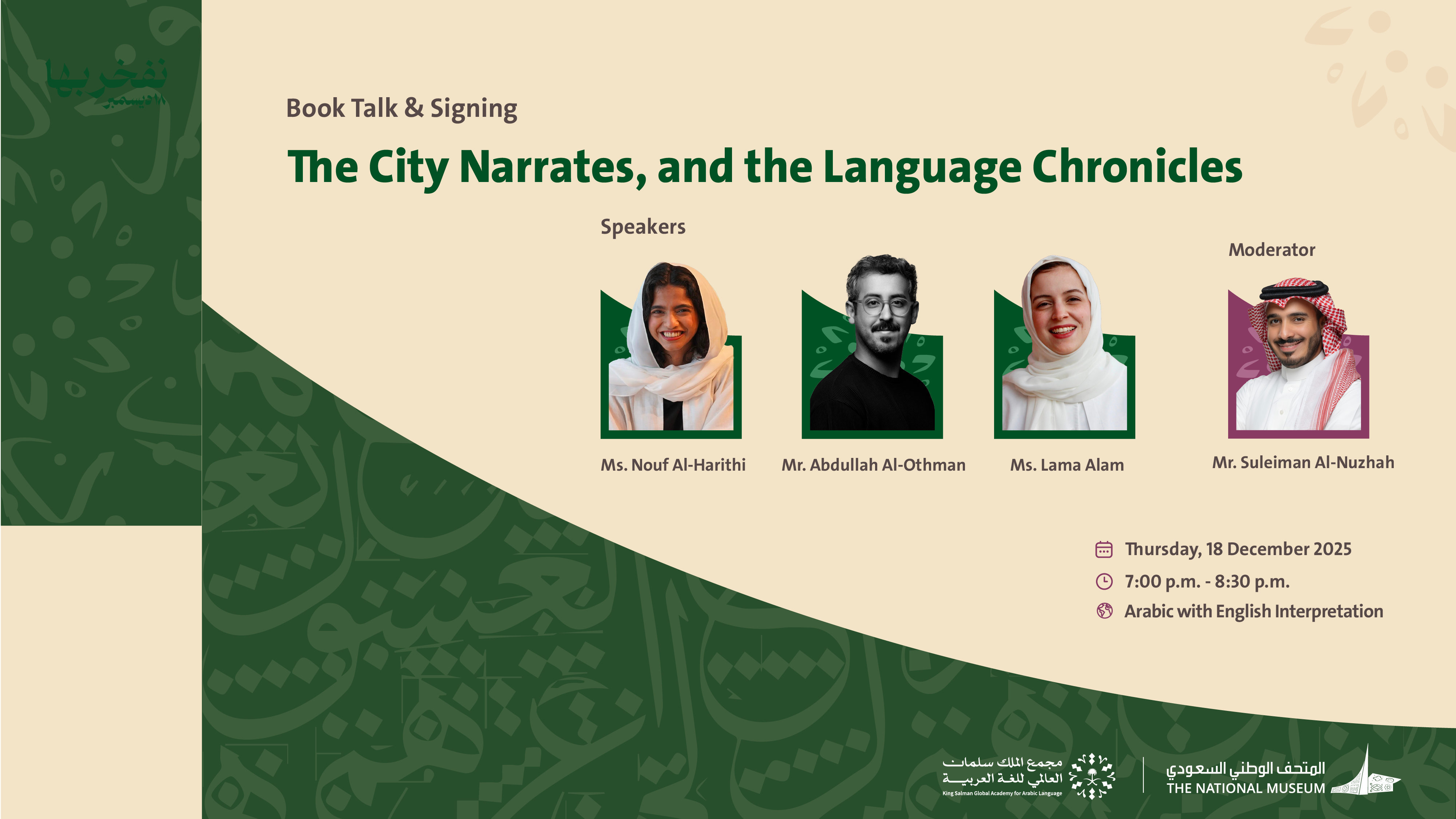 Experience the beauty of Arabic through the soul of story and city, in a distinctive literary session that fuses folklore with contemporary reflection, concluding with the signing of "Hikayat Rajab" and "Language & the City" in the presence of their authors. A cultural encounter where word, images, and memory converge with place.